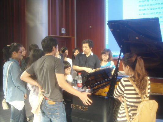 5月6至9日,蔡常青副教授应邀到广西师范大学音乐学院进行即兴钢琴演奏、伴奏与弹唱教学的学术交流活动,并成功举办了钢琴即兴演奏、伴奏与弹唱讲演会。活动由广西师大音乐学院键盘教研室主任张黎明副教授主持,刘月娥书记与音乐学院师生共同出席了讲学活动。