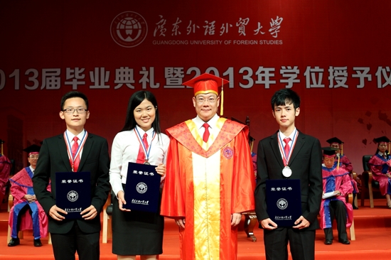 2013年“优秀大学生奖章”获得者周宇捷接受表彰(右一)