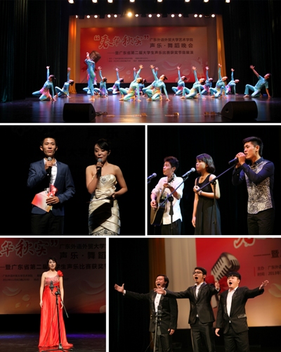 演出作为学校本科教学质量月的活动之一,学院领导高度重视,副院长罗金燕、系部主任李志刚、王蓓等师生们连日来,不辞辛苦,克服困难,精心组织,主要选送了我院学生在广东省第二届大学生声乐比赛中的获奖节目及近两年其它类型声乐比赛的获奖作品进行展演,同学们的精彩表演得到了观众们的热烈欢迎和一致好评。