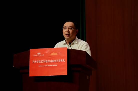 副校长兼艺术学院院长刘海春首先致辞,为新生们介绍了学院概况,刘校长在开学典礼致辞,要求新生进入大学后做人要脚踏实地,做事要注重细节、持之以恒、坚持到底、注重反思,做学问要从求学态度、求学方法和求学习惯上改进自己。他强调新生要具备艺术素养,就应拥有善于发现美的眼睛、表现美的能力和创造美的思维。