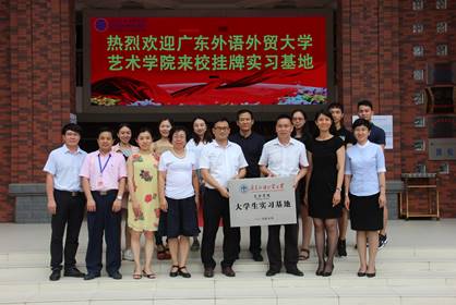 为进一步落实国际化化应用型人才培养计划,提高学生艺术实践能力,加强校外实习、就业基地建设,经过前期协商,7月6日下午,我院党总支副书记张莉、副院长罗金燕、李志刚、艺术设计系主任刘晶鑫以及部分学生赴佛山高明广东外语外贸大学附设佛山外国语学校参观走访,并为“广东外语外贸大学艺术学院大学生实习基地”进行签约挂牌仪式。