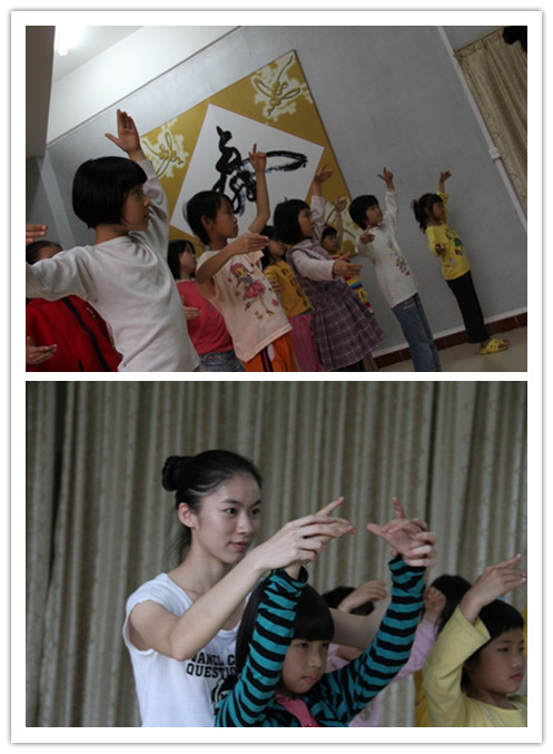 志愿者为小朋友们教芭蕾舞