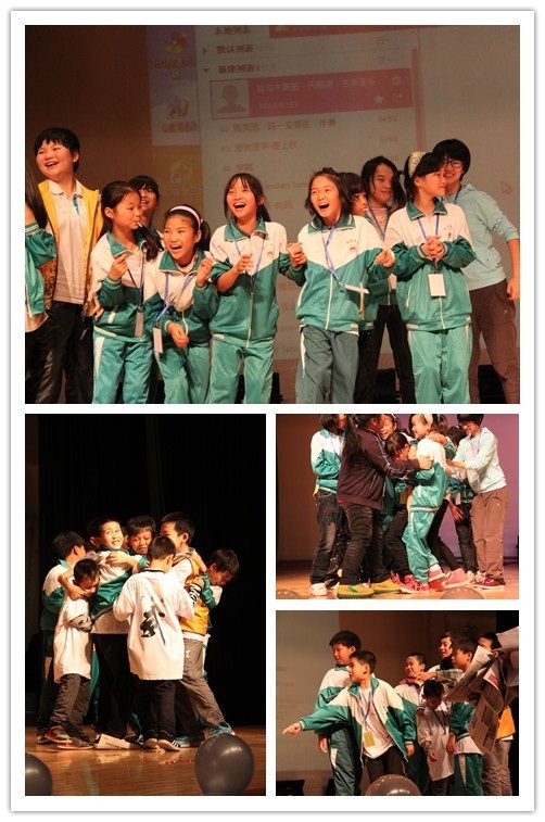 本次活动在志愿者与孩子们的游戏中拉开帷幕。舞台上身着校服的孩子们沉浸在“踩报纸”游戏中不亦乐乎,游戏以男生女生竞赛的方式进行着,孩子们互相搀扶,试图让更多的同伴站在同一张报纸上。天真稚气的脸庞洋溢着阳光般的笑容。