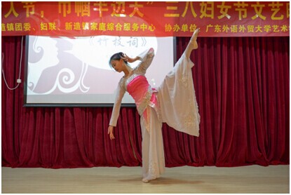 3月8日晚上7:30,由新造镇团委,妇联,新造镇家庭服务中心主办,广东外语外贸大学艺术学院协办的三八妇女节慰问文艺晚会“靓丽女人节,巾帼半边天”在新造镇妇女之家温暖举行。