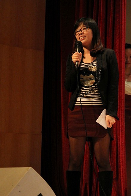 大赛分自我介绍、才艺展示、模仿秀和你划我猜四个环节,选手们个个多才多艺、思维敏捷,使得场上比赛犹为精彩。选手们无论是在才艺展示中展露出的自信还是在模仿show中的幽默,都展现出了流利的英语口语。其中在才艺展示环节,来自2012级音乐表演班的四人男生组合模仿网络红人“语言哥”,通过用不同国家口音说英语的节目使得台下观众捧腹大笑,给大家留下了深刻的印象。此外,来自12级的金依依与郑婷婷用古筝现场伴奏时下流行的英文歌《Rolling in the deep》及节目中惊喜现场的B-box,令评委与观众耳目一新,趣味十足。