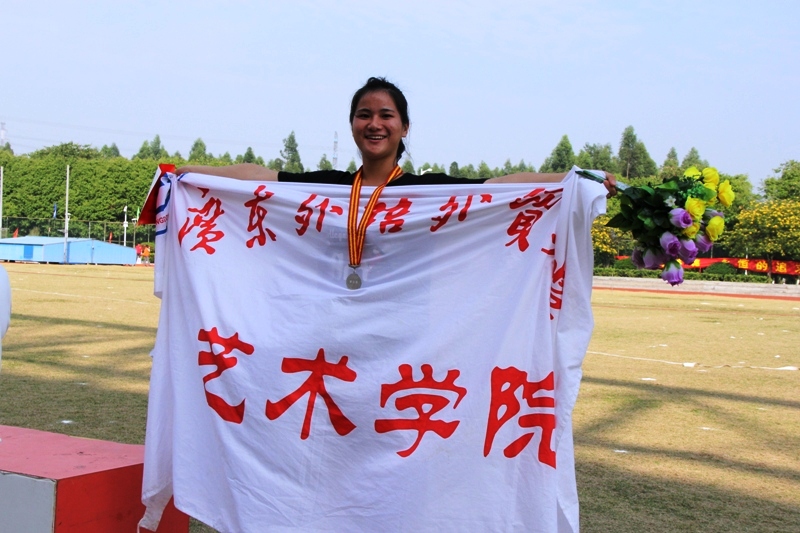 迎着爽朗的秋风,我院的运动健儿们在为期两天的校运会中,斗志昂扬,顽强拼搏,积极为学院增光添彩。2013级音乐表演班殷咏倩同学凭借其超强的实力,夺得了女子学生组标枪第二名的好成绩,为艺术学院的校运会记录添上了精彩的一笔。