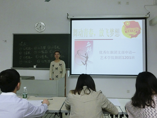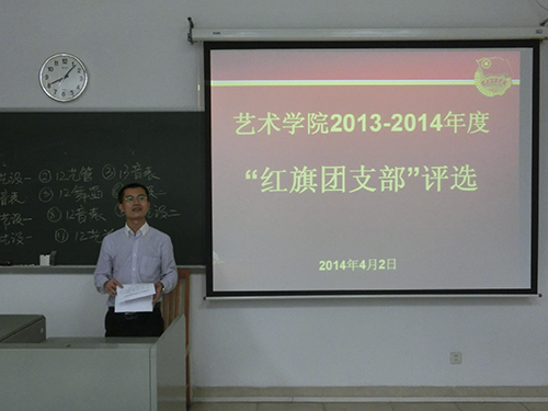 为了验收各团支部一年来工作成绩,同时给各团支部一个展示支部风采的舞台,4月2日晚7:00,艺术学院2013-2014年度红旗团支部评选大会在艺术楼343教室准时召开。学院的党总支副书记林烈群、团委书记杜雯、11级辅导员张莉以及团学主席团成员作为评委出席了此次活动。