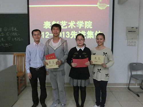 最终获得校级“优秀红旗团支部”荣誉称号。11级艺术设计1班、12音乐表演班、12级艺术管理班、13级视觉传达设计2班4个团支部荣获了院级“优秀红旗团支部”的称号,让一年以来的汗水与成果得到了回报。