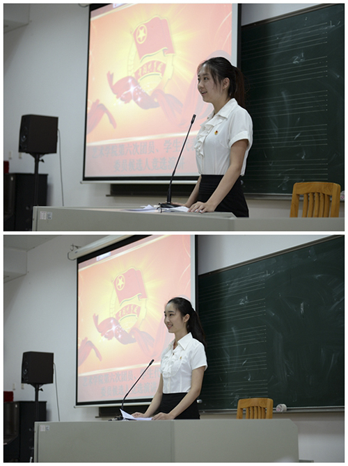 紧接着,进入到本次大会的另一项重要议程,选举产生艺术学院第六届第一任团委、学生会委员。每位候选人轮流登台,候选者们热情洋溢地表达了自己对团学工作的热爱以及自己的意愿和未来的工作设想。现场氛围温馨活跃,台下掌声此起彼伏。