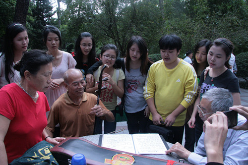 随后,同学们分散游览烈士陵园内部辛亥革命红花岗四烈士墓、叶剑英墓等,在参观的途中,同学们还和园内的普通市民一起唱红歌、跳交际舞,发挥自己专业同时,与园中的普通市民畅谈革命先烈们的光辉事迹。