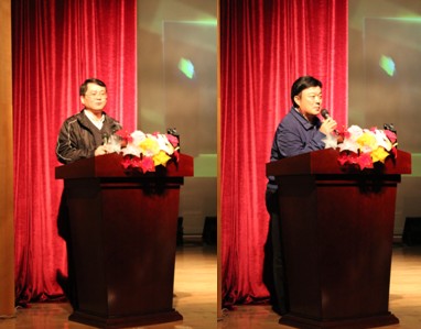 艺术学院党总支书记袁长青与蓝斌男副总经理分别致辞