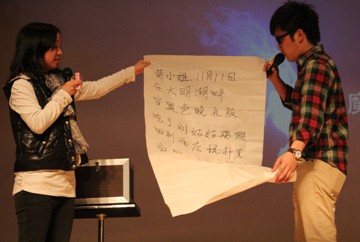 而整场晚会最高潮的地方,非担任表演嘉宾的艺术学院团委学生会莫属。由学生会主席、团委副书记及各部门部长精心编排的《舞台剧》,赢尽全场欢呼声。