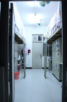 3.地面/天花板:宿舍内及门口墙上无污点、地面无垃圾、壁无蛛网、墙上没有悬挂物