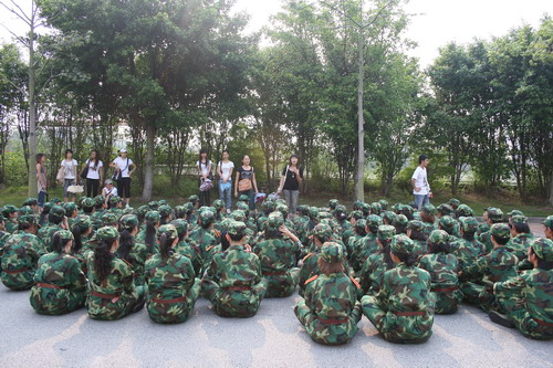军训生活是单调又苦涩的,除了永无休止的训练之外就是满身的疲惫。师兄师姐们的探班无疑给了我们一个大大的惊喜。他们让坐在后排被太阳晒到的同学坐到前面阴凉的地方来,这个动作很小也很简单,但却是排在后面的同学渴望已久的事情。体贴与关心从来就不是挂在嘴上的三言两语,而是这生活中最细小的点滴,无微不至,感人至深。后来,艺术管理、音乐表演和艺术设计的男生都分别演唱了歌曲,舞蹈系的同学还来了一段热舞,加上师兄师姐风趣幽默的“主持”,在我们休息的这十分钟里,给我们送来了一出即兴的文艺演出。