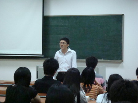 郝老师讲话后,《芝加哥》剧组人员一一介绍了他们筹备这出剧的经验,从剧本的选择到背景的制作,从演员的排练到最后的演出,都作了详细介绍。为表现配音演员与舞台上演员的默契配合,男女主角及男女配音还在现场为大家现场演绎了一段,博得了在场观众的热烈掌声。在做完经验介绍之后,我院学生就他们在戏剧筹备过程中遇到的问题与他们进行请教,经贸学院学生的都一一作了详细回答。