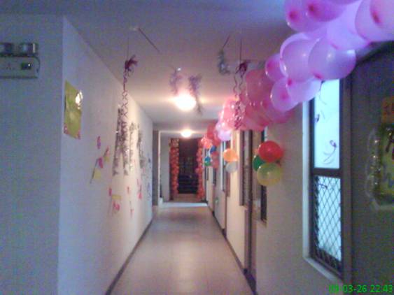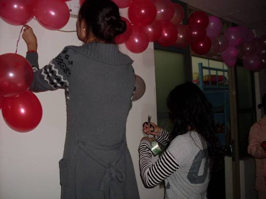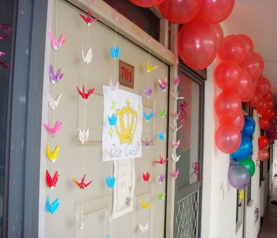 同学们用气球点缀在走廊门口上,让走廊变得更加的富有生机。单调的白墙一下子变得靓丽许多。在愉快的气氛中同学们在共同合作的同时,享受共同动手、互助互爱的乐趣。