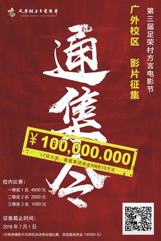 由艺术学院负责承办的第三届足荣村方言电影节广外站比赛于2018年4-7月进行。本次活动以保护和发展方言文化为宗旨,支持并奖掖电影从业者用方言进行多元的艺术创作,扶持方言电影的成长,提升方言电影的社会影响力。各学院积极报名,共回收作品11件。经组织艺术学院专业教师匿名评审,共评出一等奖1名、二等奖2名、三等奖2名,获奖名单公布如下,并选送参加第三届足荣村方言电影节各竞赛单元: