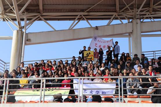 据悉,我院从9月就开始筹备参加此次运动会的各项工作。在方阵排练方面,舞蹈与艺术管理系主任马威威和学生们一同策划构思入场方式,并多次指导学生排练,最终选择了“舞蹈专业技能+口号+横幅”相结合的展示形式,学生们统一穿着红和黑色服装展示舞蹈专业能力,“艺术精英,敢做敢拼;中华复兴,有我声音”的口号和“黉舍吹角起征鸿,艺苑琵琶奏凯歌”振奋人心,让现场观众耳目一新。