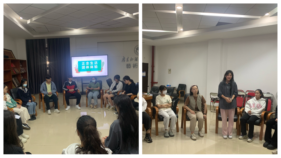会后举行“照顾好自己”正念团体辅导体验活动。由公管学院应用心理学研究生带练,活动中学生们认真倾听自己的心声,积极感受困惑,学习培育注意力与觉察力的体验方法,分享练习的体会,讨论用正念面对、处理生活中的压力、起伏和困境,将正念态度融入学习和生活。