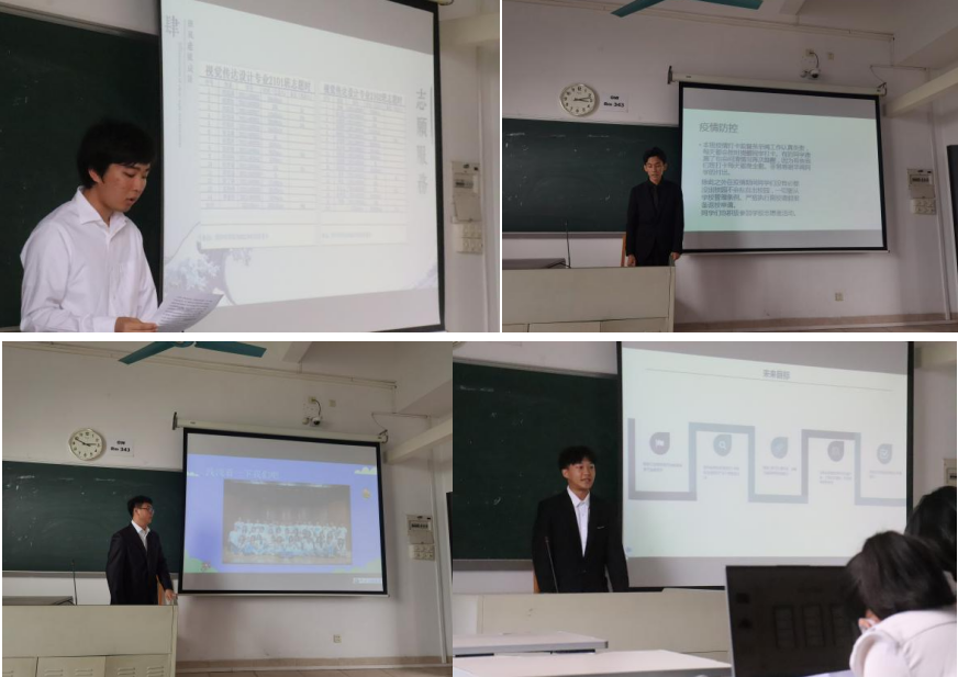 舞蹈表演2101班、音乐表演2101班、视觉传达与设计2101-2103班、音乐国际传播2101班通过丰富的视频、图片、数据等资料,从班级建设、疫情防控、学生教育与管理、班风建设成效等维度展示班级风采,各班展示人员的精彩解说赢得了热烈的掌声。