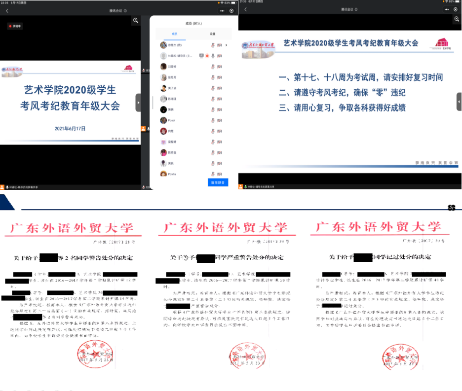 在学生考风考纪暨疫情防控教育工作中,艺术学院除召开年级大会外,还组织学生签订了《诚信考试承诺书》,在团学公众号推出了关于诚信考试、加强疫情防控和应征入伍等推文,多措并举推进学生工作。