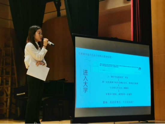 3月25日下午,我院在艺术楼小剧场举办“梦想起航 青春榜样——榜样与你面对面”榜样分享会,学院副书记连勇、辅导员林锦松以及各年级学生共约200人到场聆听。本次分享会邀请了国家奖学金获得者、17级音乐表演专业钟颖霏,国家励志奖学金获得者、18级视觉传达专业甘秋丹、18级数字媒体专业罗远洋等三位同学先后作主题发言,分别结合自身实际分享学习成长收获。