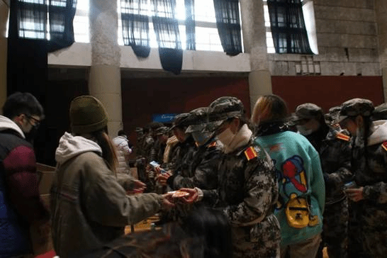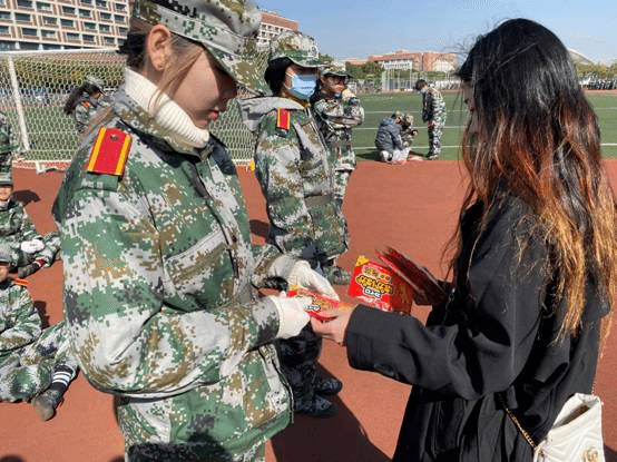 近期天气寒凉,贴心的老师以及朋辈导师们给军训的艺术学子送来“暖宝宝”。林锦松表示,虽然最近天气转凉,我们要注意防寒保暖,也要坚持到底。
