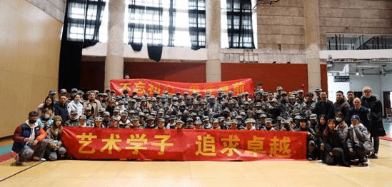 体育场正在训练的2020级新生队列整齐、气势昂扬、口号洪亮,展示了艺术学子奋发向上的精神风貌,领导们纷纷对此给予表扬。