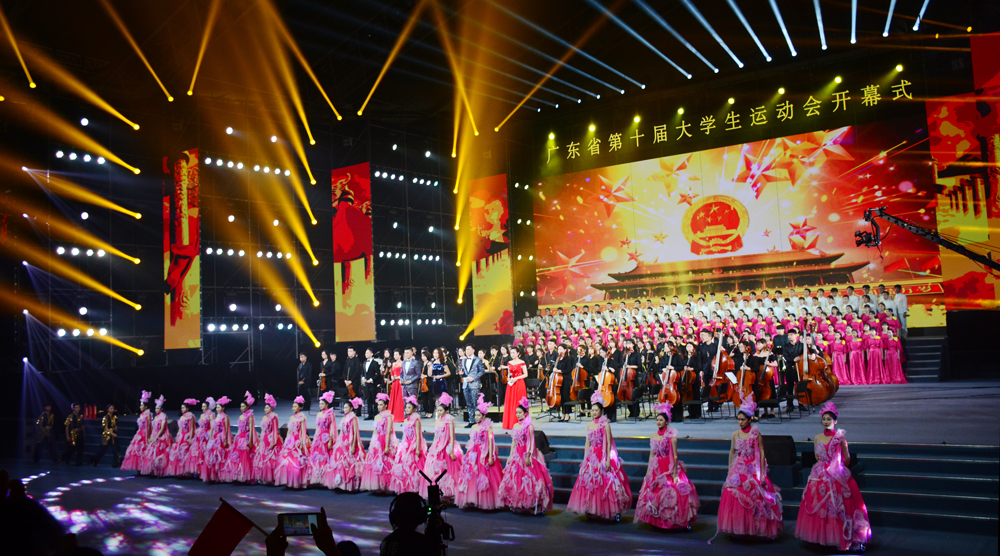 2019年5月11日,广东省第十届大学生运动会开幕式在我校南校区体育馆隆重开幕。全省共10所高校参加开幕式演出,演员达640人。