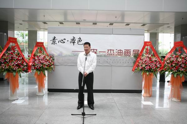 仲校长发表了热情洋溢的讲话。他说有两个秘密告诉大家,一个就是刚才已说到的早年他在南京读书期间曾经翻译过的关于西方现代艺术的译作,他曾经有志于艺术史的研究与翻译,但后来还是走上了同声传译之路。第二个是93年他曾与李一杰共事,那个时候的一杰虽然还在附中教美术,却也不曾放弃过对艺术的探索,一杰在艺术上一直保持着他独到的见解和执着的追求,奋力向上,积极进取,三考广美最后“中举”,正是凭借这种强韧的精神,才有了今日飞跃的进步。仲校长由此更表达了对艺术的崇敬与喜爱之情,通过二十年前还在念书的自己与美术结下的不解之缘、出访欧洲等国期间不忘观赏油画大师名作等,在仲校长的理解中,艺术就是美的体现,艺术就是创造,而美的东西是能打动人的心灵的,是值得每一个人去不断追求的,真正能在这条路上永不放弃走下去的人,更是让人敬仰的。