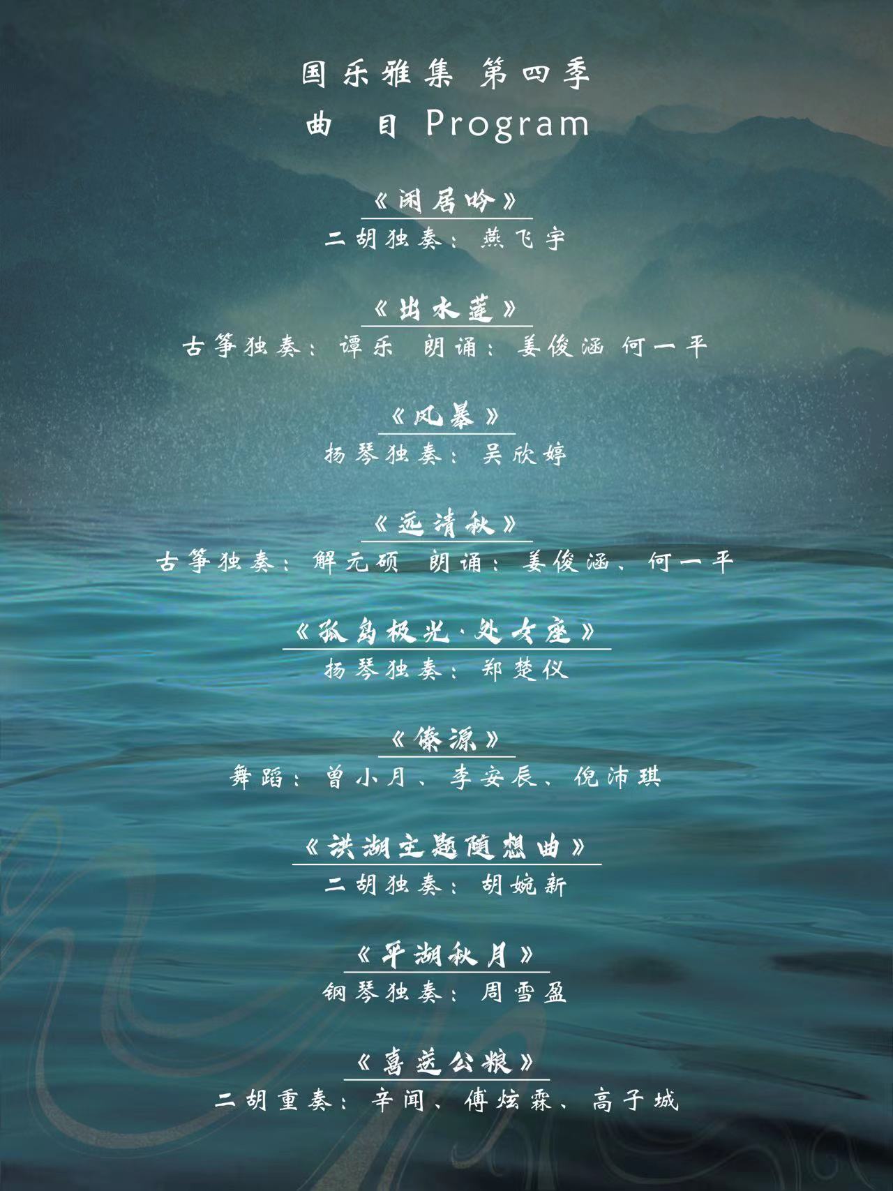 该活动启于2022年本科教学质量展示,在举办的三期中,曾走进深圳雅昌艺术中心,与更多的听众分享优厚的传统音乐文化。第四期将走进奇妙的心理世界,七首曲目动人心弦的演绎,让听众凝神沉浸在琴弦流淌的美妙音乐律动中,是万千思绪的放空冥想,是酣畅淋漓的心灵治愈。