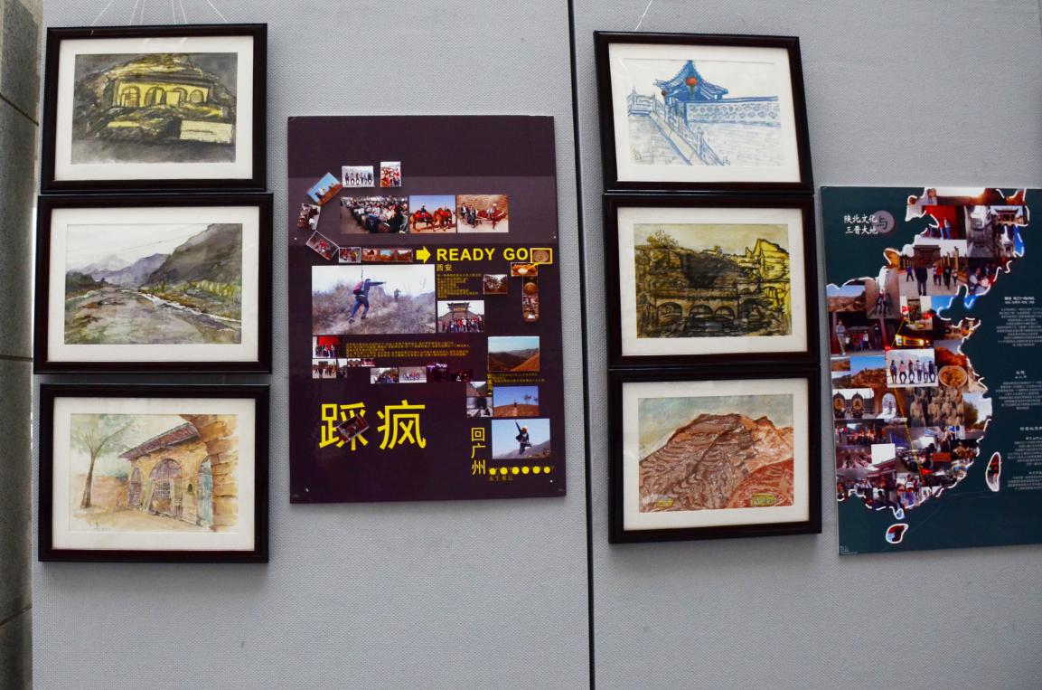 大自然的丰富多彩,是艺术表现的绝佳对象,同学们从不同的视角,采用多样的创作手法(纸本综合材料、水彩与油画),展现黄土高原的人文、自然景观。山之魂,水之灵,石之静,天之洁,人之朴实,……无不显现于笔下;村路之坎坷,墙瓦之诉说,绘画之情趣,沧桑感,岁月感,成就感,美感……无不溢之于丹青之间。从此次展出的138幅作品和44篇游记中可以看出同学们较扎实的基本功底和文化素养。值得一提的是,此次展览采取多维布展方式,将采风路线图、摄影照片、游记、甚至吐槽文字都融入版式设计和绘画作品中,呈现出一个生动有趣,而又多元立体的展览空间。