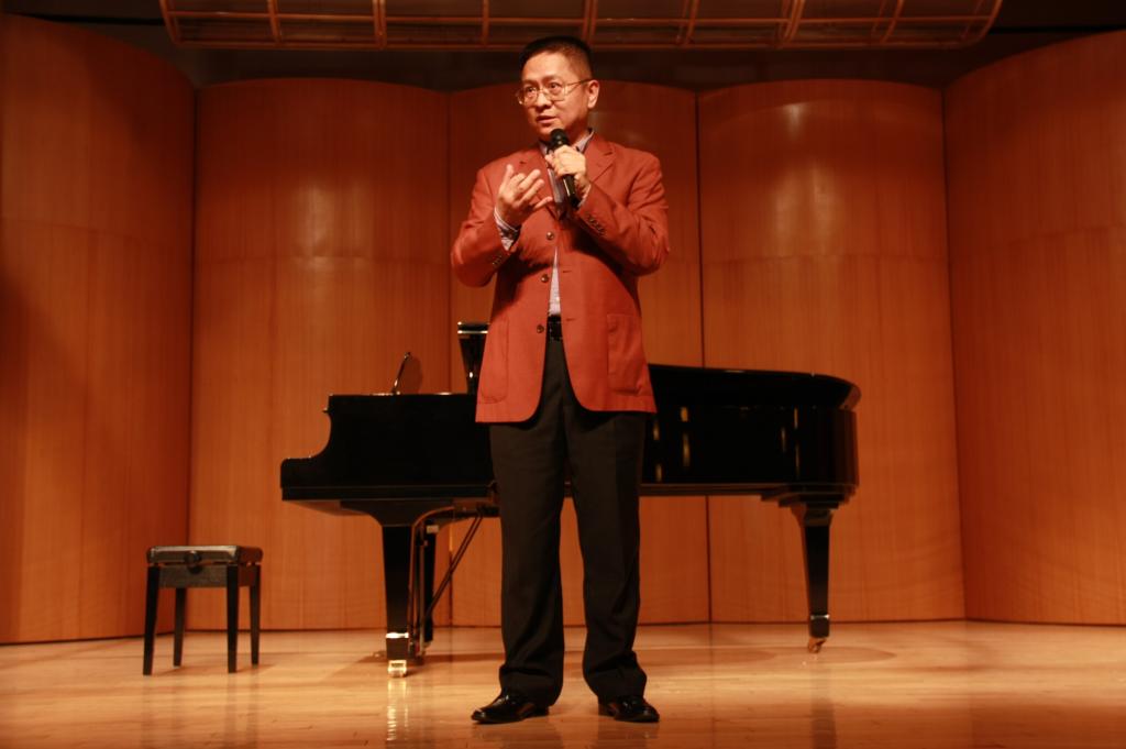 在2014年本科教学质量月之际,著名教授论坛“美声、民族、流行唱法之异同”于11月18日下午2:00在艺术楼小剧场开讲,中国音乐家协会会员、广东省音乐家协会副主席、深圳市文联副主席,著名作曲家、歌唱家姚峰受邀担任主讲嘉宾。