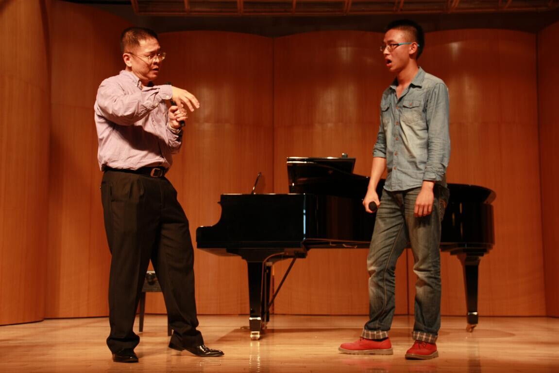 讲座后,姚峰邀请在场同学上台互动提问或现场教学。姚峰教授认真聆听了上台同学的演唱后,指出了各个学生演唱中存在的不足,并提出了建议及改进方法,姚峰诙谐幽默而又不失艺术高雅的专业讲授,让到场的每一位学生和老师都受益匪浅。
