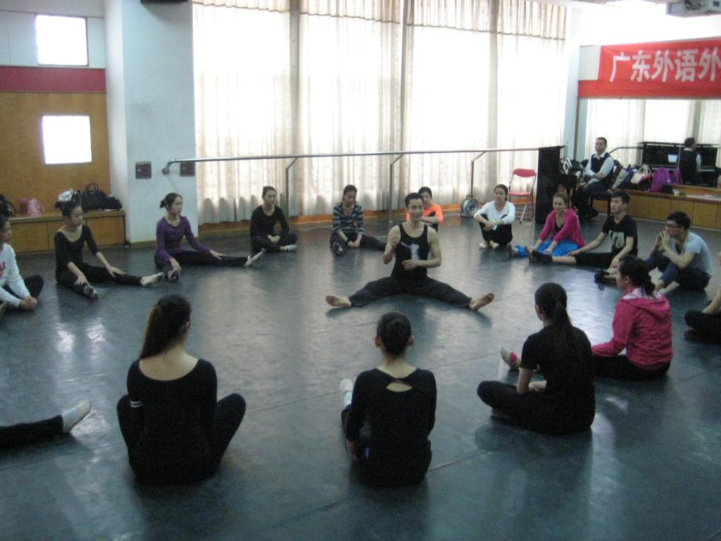 3月9日下午,由广东外语外贸大学艺术学院与广东南方文化发展有限公司共同策划的《舞·道》讲座,在艺术学院舞蹈排练厅举行,主讲人是杰出舞蹈家傅兴邦大师。广东南方文化发展有限公司董事长邓军、我院党总支书记朱珍葶、艺术管理与舞蹈系主任李志刚、公共部主任杨健生、舞蹈系教师马威威、陈燕敏等出席讲座。来自我院艺术管理与舞蹈系的学生,以及部分音乐表演系的学生参加了讲座。