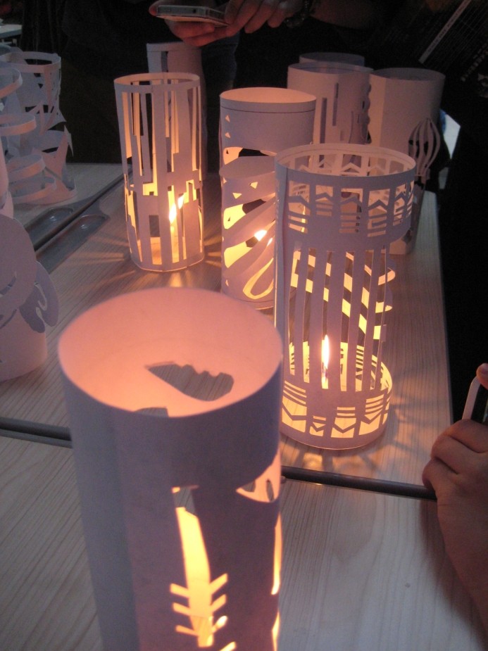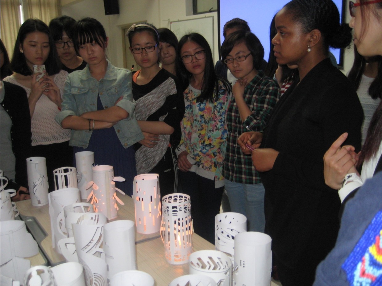 最后,Makeba Lewis在同学们创作的纸筒里点上白色的蜡烛,当烛光穿过镂空的图形耀进大家的眼眸时,每个人都由衷地感到了创作的魅力和艺术的伟大。