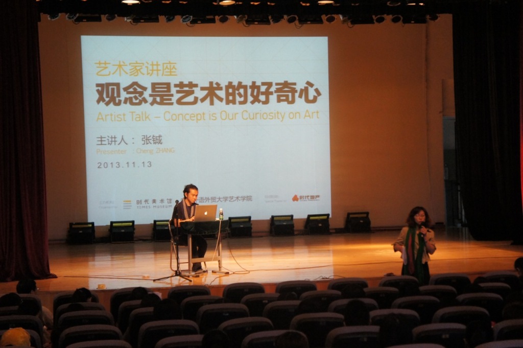 11月13日上午10点,艺术设计系邀请时代美术馆工作坊项目艺术家张铖来到艺术学院小剧场,为设计系的全体学生开设了一场主题为“观念是艺术的好奇心”的课堂讲座。