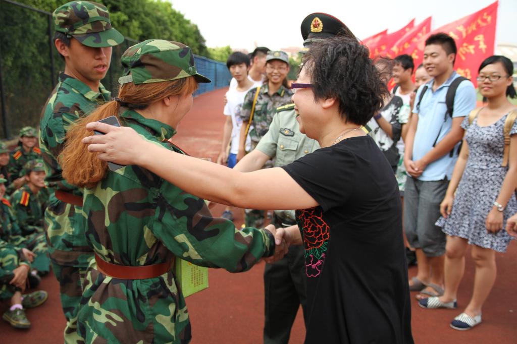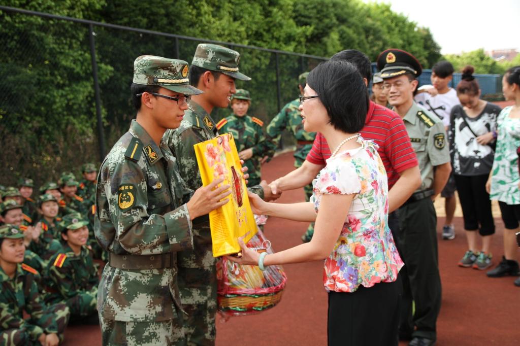 随后,学院领导为辛勤工作的教官们送上了节日的问候和祝福,为新生们送上了特地准备的解暑饮料。小小的惊喜,暖暖的情谊,学院领导的关怀,老师的关注,师兄师姐的关心为炎炎烈日下训练的新生们带来了丝丝凉意。