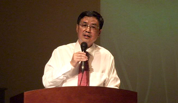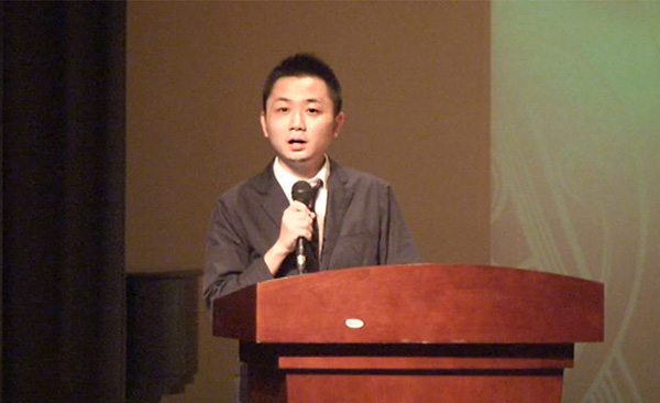 紧接着教师代表肖伟棠老师上台发言,他向大家讲述了如何在大学里应对来自专业学习、社会实践等方面的挑战,特别强调要充分利用好图书馆的各种资源。