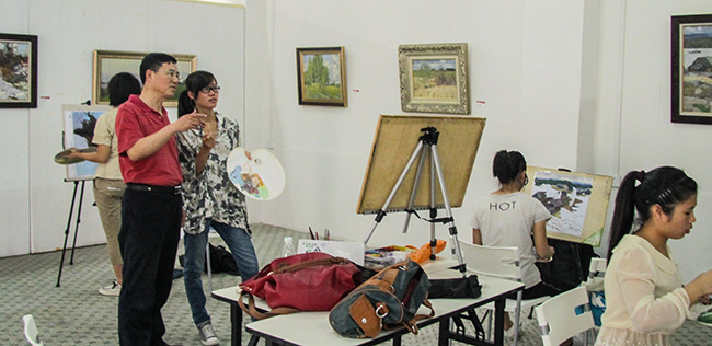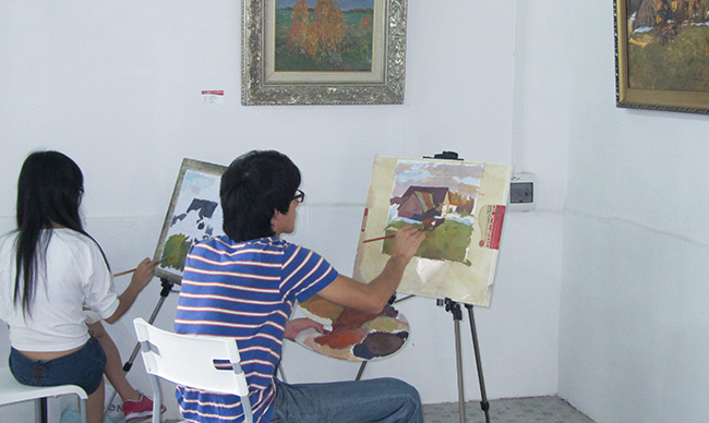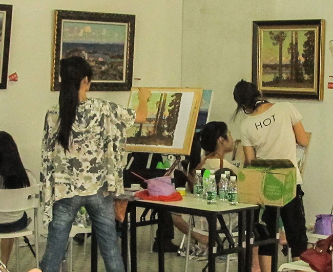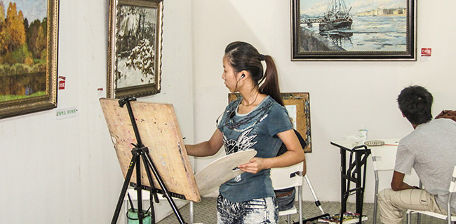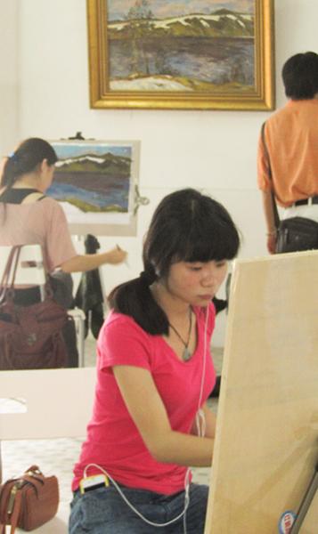 学生正在现场临摹俄罗斯油画作品(1)