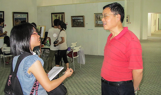 6月14日,正值俄罗斯“伏尔加河畔印象”油画作品在顺德德胜创意园展览之际,艺术设计专业2011级二班学生在院长李于昆、设计系主任储晓戈的带领下,专程到德胜创意园开展“走近原作,感受色彩”的实践教学活动。活动的目的是将正在学校讲授的“色彩”课程“搬”到德胜创意园进行,让学生近距离直接感受、学习俄罗斯油画家运用色彩表现风景的魅力,观赏俄罗斯油画家的艺术风采。在展览厅里,学生在老师的指导下,认真临摹,学习,观赏。大部分同学都是第一次观看原作,同学们认为原作与印刷品是很不一样的,这样的学习对于提高同学们的艺术品位和表现方法很有帮助。李于昆在展览现场还接受了新快报记者的采访。德胜创意园总经理周宏评价“这个活动的开展不但进一步加强了园区与广外艺术学院的合作,也给同学们创造了一个学习、观赏的好机会”。