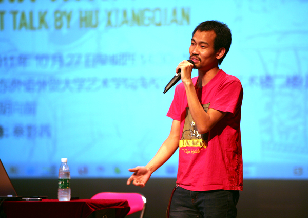 这次讲座是时代美术馆2011年9月11日-10月30日的展览“一个(非)美术馆”中的一部分。胡向前先生是参展艺术家之一。他的创作形式主要包括行为和影像,往往来源于对周边生活环境与现实的敏锐观察和独特思考。他善于运用对比,把身边的事放大到社会环境当中,以幽默而随性的方式探讨各种异质的微观宇宙。