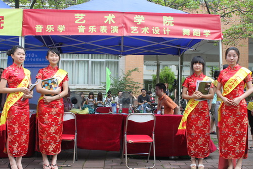 舞蹈专业的学生开展的现场舞蹈表演也吸引了众多人的关注,拿着资料的学生和家长,都被他们吸引而停下脚步观看。他们使出看家本领,成功地带动了现场的气氛,赢得了在场观众的热烈掌声。