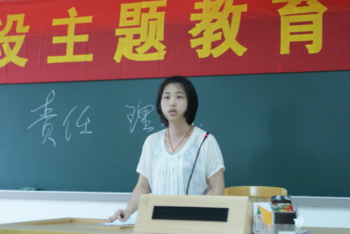 接下来便是学生代表温星怡同学和陈蔚同的发言,06级的温星怡同学讲了一句话:态度决定一切。这也是一名老师跟她说的,她牢牢的记住了,沿用至今。已经大三的陈蔚,给同学们讲述了她那忙碌的大学3年,身兼多职的她,她鼓励同学们不断尝试,不要怕辛苦,多结交朋友。辛苦只是短暂的,辛苦后的成果却受用终身。