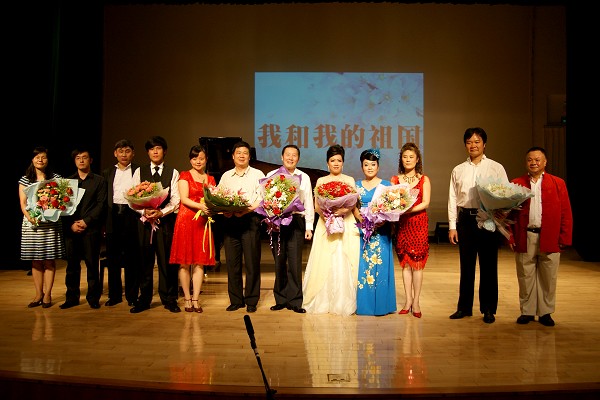比之声乐系老师的歌声,钢琴系三位年轻老师的琴音也不落下风。除了为歌曲伴奏,郑远和何涛还携手为观众先上了双钢琴合奏《红旗颂》,赢得了同学们热情的鲜花和掌声。此外,声乐系主任王蓓用歌声颂扬了建国英雄的梅花风骨,杨建生老师浑厚的嗓音令四座惊叹,苏张老师用歌声传递而李秋玉老师在歌唱歌剧《卡门》选曲时,优雅地叉起腰,让人感觉卡门的身影立刻呈现在我们面前。最后,音乐会在主持人的结束语中,所有演职人员共同演唱《我和我的祖国》的歌声中落下了帷幕。