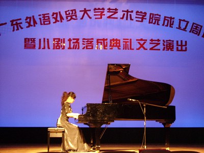 我校艺术学院成立于2005年10月26日,现有音乐表演及艺术设计两个专业。一年来,我校领导高度重视艺术学院的发展,为其建筑了一座面积达12000平方米的艺术楼,购置钢琴60台,力求为艺术学院学生提供最好的设备与环境。如今,藉小剧场落成典礼之际,艺术学院全体师生为学校各方及社会各界展示了一年来他们所取得的成果。