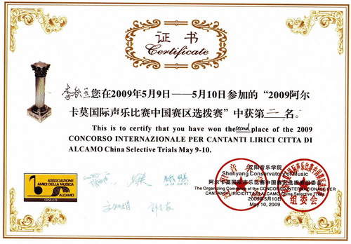 5月8日,沈阳音乐学院张灯结彩,充满节日气氛,来自中央歌舞剧院、海政文工团、中央音乐学院、上海音乐学院、沈阳音乐学院、武汉音乐学院星、海音乐学院等国内著名专业团体和音乐院校的50多名专业声乐选手共聚一堂,参加在此举行的 “阿尔卡莫”国际声乐大赛中国赛区选拔赛。经过三天紧张而激烈的角逐,我校艺术学院李秋玉老师最终获得第二名的好成绩。