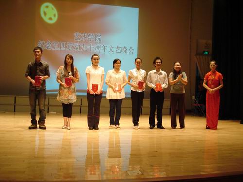 5月21日晚,艺术学院的师生欢聚小剧场,用艺术的魅力打动了全场观众,精彩的演出向“五四”展现出青春特有的活力与风姿。出席本次晚会的领导有校团委副书记谢秀兰,艺术学院党总支书记车小真,艺术学院音乐系主任王蓓,艺术管理系主任李志刚,经贸学院团委书记郝光以及信息学院团委书记汤程荣。