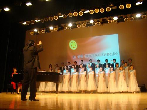 2007音表班的合唱《椰寨情歌》和《香格里拉》,好似把观众带到了一个如诗如画的香格里拉,张彬老师的精彩指挥把晚会推向了高潮。