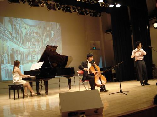 一曲器乐合奏的《卡农》让气氛变得平和起来。大家沉醉在美妙的乐曲声里,使人不禁佩服艺术学院学生的才华和艺术的魅力。